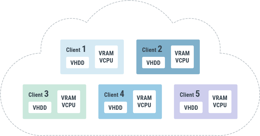 Каждому пользователю публичного облака доступен чётко описанный и целенаправленно выделенный лимит виртуальных ресурсов (vCPU, vRAM, vHDD), возможность превышения которого технически заблокирована. Пользователи невидимы друг другу, и не существует абсолютно никаких обстоятельств, при которых несвязанные клиенты «пересекаются» в виртуальной среде.