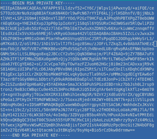 Ключ должен начинаться строкой «—–BEGIN RSA PRIVATE KEY—–», а заканчиваться строкой «—–END RSA PRIVATE KEY—–» как, например, на рисунке ниже.