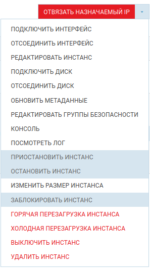 4.2 После того как инстанс будет выключен в этом же меню необходимо выбрать пункт «Удалить инстанс» (при этом диск на базе которого он был создан и все данные останутся в сохранности и удалены не будут, удалена будет только конфигурация инстанса и мы ее создадим заново на следующем шаге без потери данных).