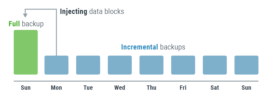 Создание полного снэпшота представляет собой создание «среза» диска с описанием логических блоков, а также самих данных, которые хранятся на диске в формате блоков.